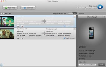 L'interface représente l'un des points forts de Video Converter. Le style est élégant, très soigné alors que la convivialité est véritablement excellente.